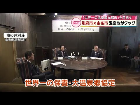 世界一の温泉観光都市を目指して、別府市と由布市が23日、観光客の誘致を共同で ...