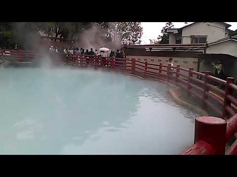 大きな白池に熱湯がなみなみと、池にはまれば間違いなく地獄行き、恐ろしい へきぎ.